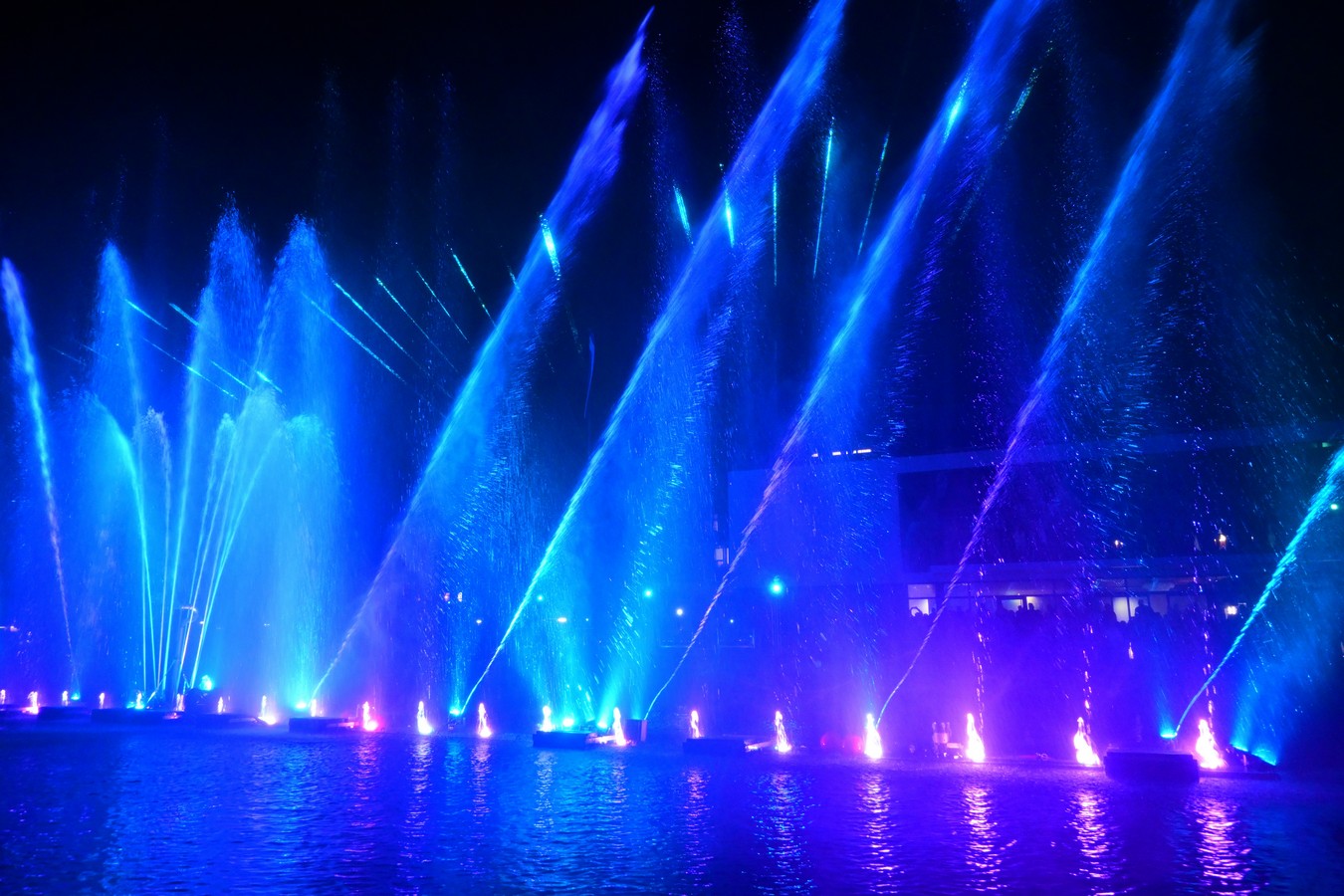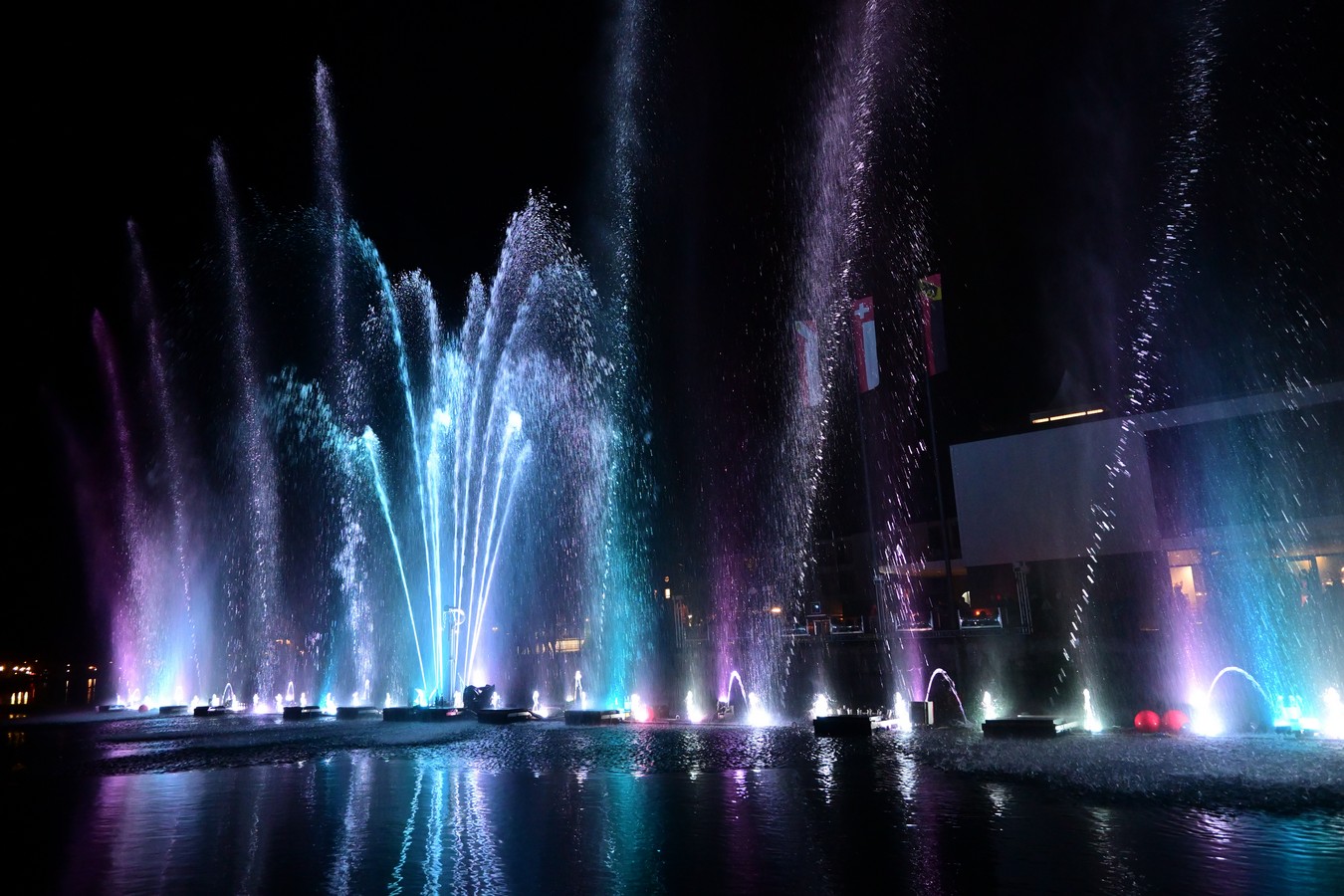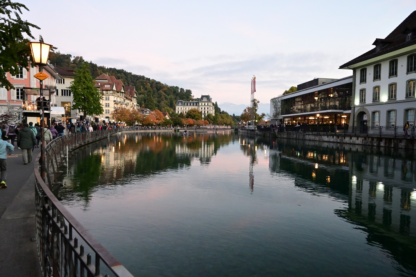 Schon lange wollen wir uns einmal den «Thuner Wasserzauber» ansehen. Nun setzen wir diesen Wunsch in die Tat um. Wir fahren nach Thun, besuchen am Nachmittag Urs Schwester und ihren Mann. Nach einem feinen Abendessen bringt uns der Bus in die Stadt. Thun kennen wir überhaupt nicht, aber diese Stadt gefällt uns auf den ersten Blick gut und wäre sicherlich auch einmal einen Besuch wert. Der relativ warme Abend lockt viele Besucher in die Stadt und somit an den Wasserzauber. Leider hat es in der vordersten Reihe keinen Platz mehr und wir stellen uns in die zweite Reihe. Als Grossgewachsener hätte man es in solchen Situationen besser, als wir eher Kleingewachsenen. Der Thuner Wasserzauber ist ein Spektakel aus Wasser, Licht und Musik. Vom 26. Sept bis am 26. Okt werden dieses Jahr die zwei 20 minütigen Shows im Aarebecken kostenlos gezeigt. Es sind zwei verschiedene Programme um 19h30 mit klassischer Musik und um 21h15 mit Pop. Bis zu 30 Meter hohe Fontänen aus Aarewasser, verbunden mit modernsten Lichteffekten und perfekt auf die Show zugeschnittener Musik, bilden zusammen eine super schöne Vorstellung. Wegen des hohen Besucherandranges wiederholen die Veranstalter die Klassische Show nochmals. Nun stehen wir in der vordersten Reihe und geniessen den Wasserzauber in vollen Zügen. Nach einem kurzen Spaziergang entlang der Aare lassen wir uns natürlich die «Pop-Inszenierung auch nicht entgehen.
