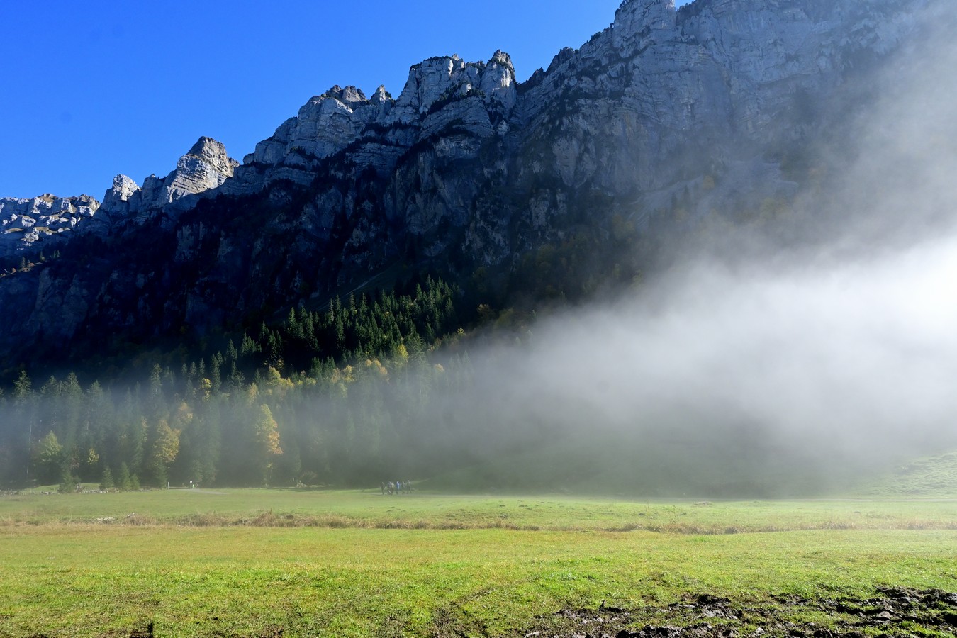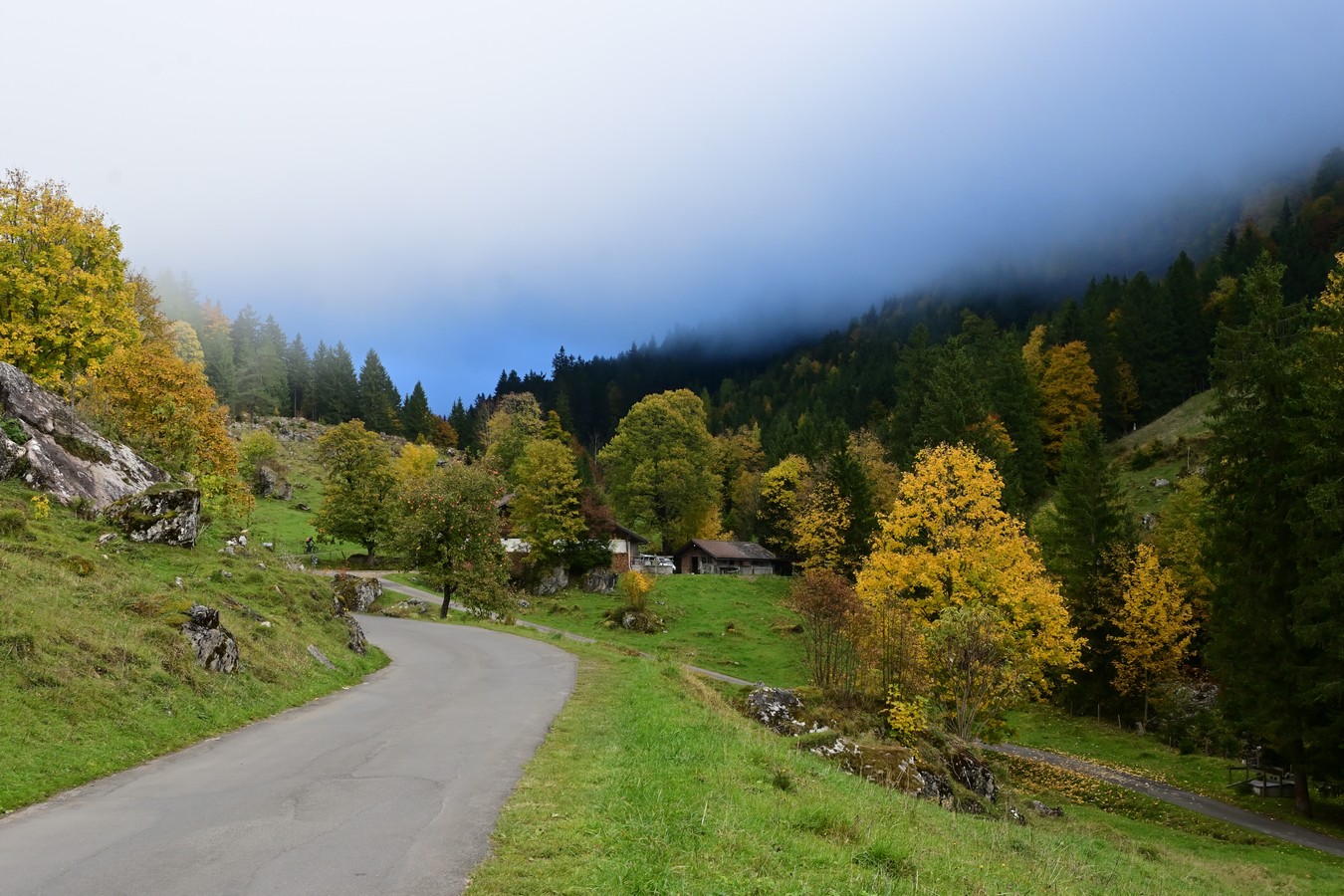 Am Sonntag konsultieren wir unserer Wetterapp. Im Herbst ist der Nebel immer wieder ein Thema. An vielen Orten ist es bedeckt, aber laut App scheint in Zweisimmen die Sonne. Somit ist unser Ziel klar. Die Fahrt durchs Simmental gefällt uns sehr gut. Bald begrüsst uns die Sonne und so geniessen wir die Fahrt umso mehr.