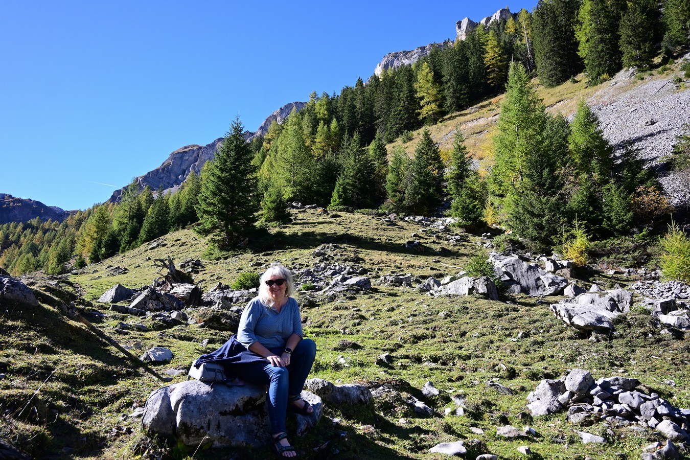 Auf google maps entdecke ich eine Alp, die man nur noch heute vor der Wintersperre, mit dem Auto erreichen kann. Immer xx30 kann für 15 Minuten bergaufwärts hochgefahren werden. Abwärts geht’s dann immer xx00 bis xx15. An einem schönen Wasserfall vorbei bringen uns etliche Kurven auf schmaler Asphalt und Schotterstrasse auf 1600 m.ü.M. Danach geht’s zu Fuss weiter. Die Sonne strahlt vom Himmel ins Gesicht und dies tut uns einfach gut. Obwohl Urs Mitte Juli sein Knie operiert hat, klappt es mit dem laufen sehr gut. Es ist sicher noch wichtig, dass es gute Wege sind und nicht nur ein kleiner Pfad über Stock und Stein. Wir sind sehr dankbar, dass die Schmerzen beim Laufen nicht zunehmen. Uns gefällt es hier oben sehr gut! Im Anschluss schlafen wir auf auf dem Campingplatz Vermeille in Zweisimmen. Am Montag fahren wir mit sonnigen Erlebnissen nach Hause