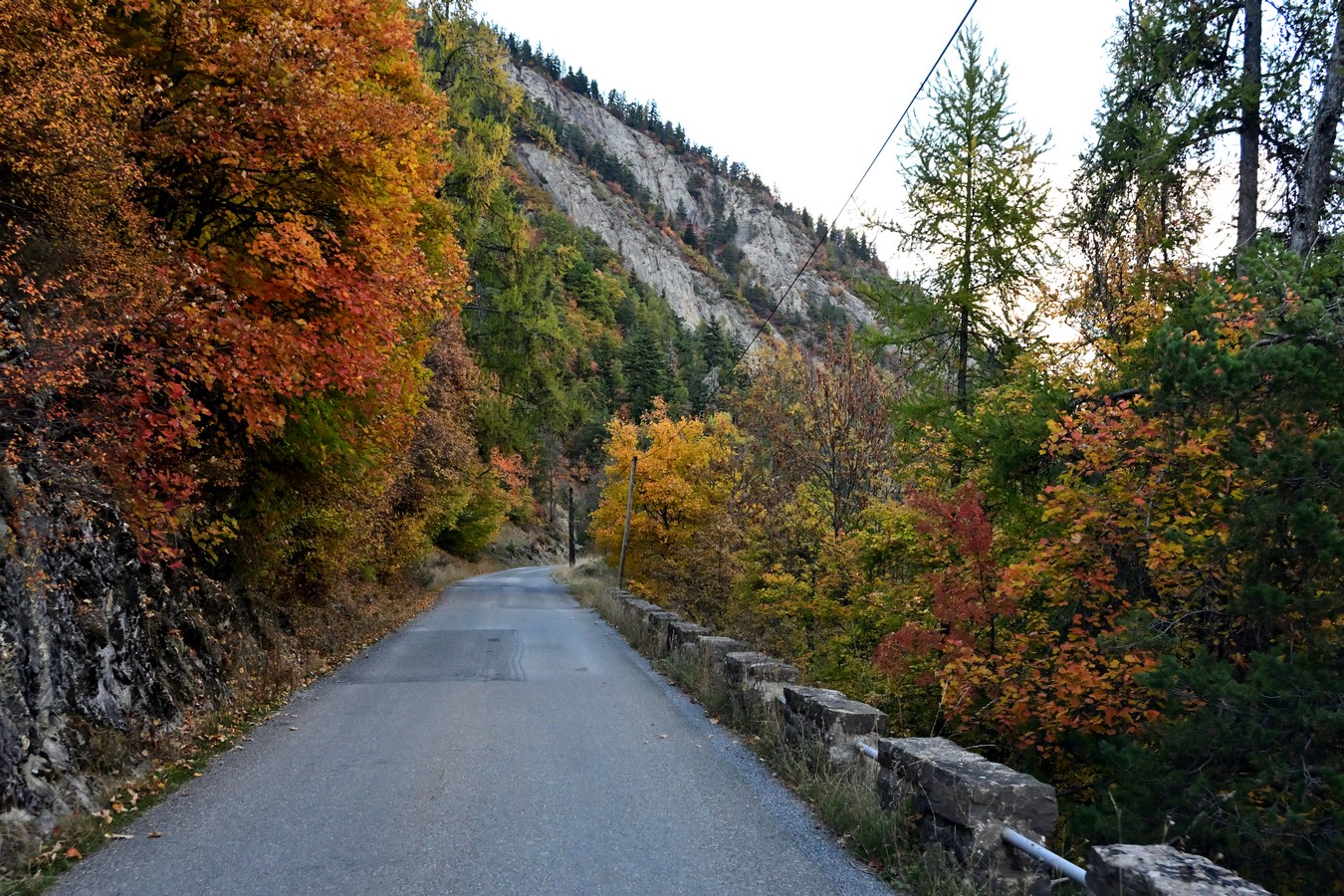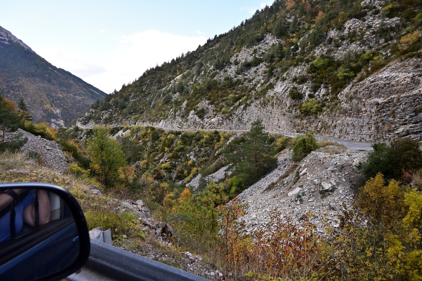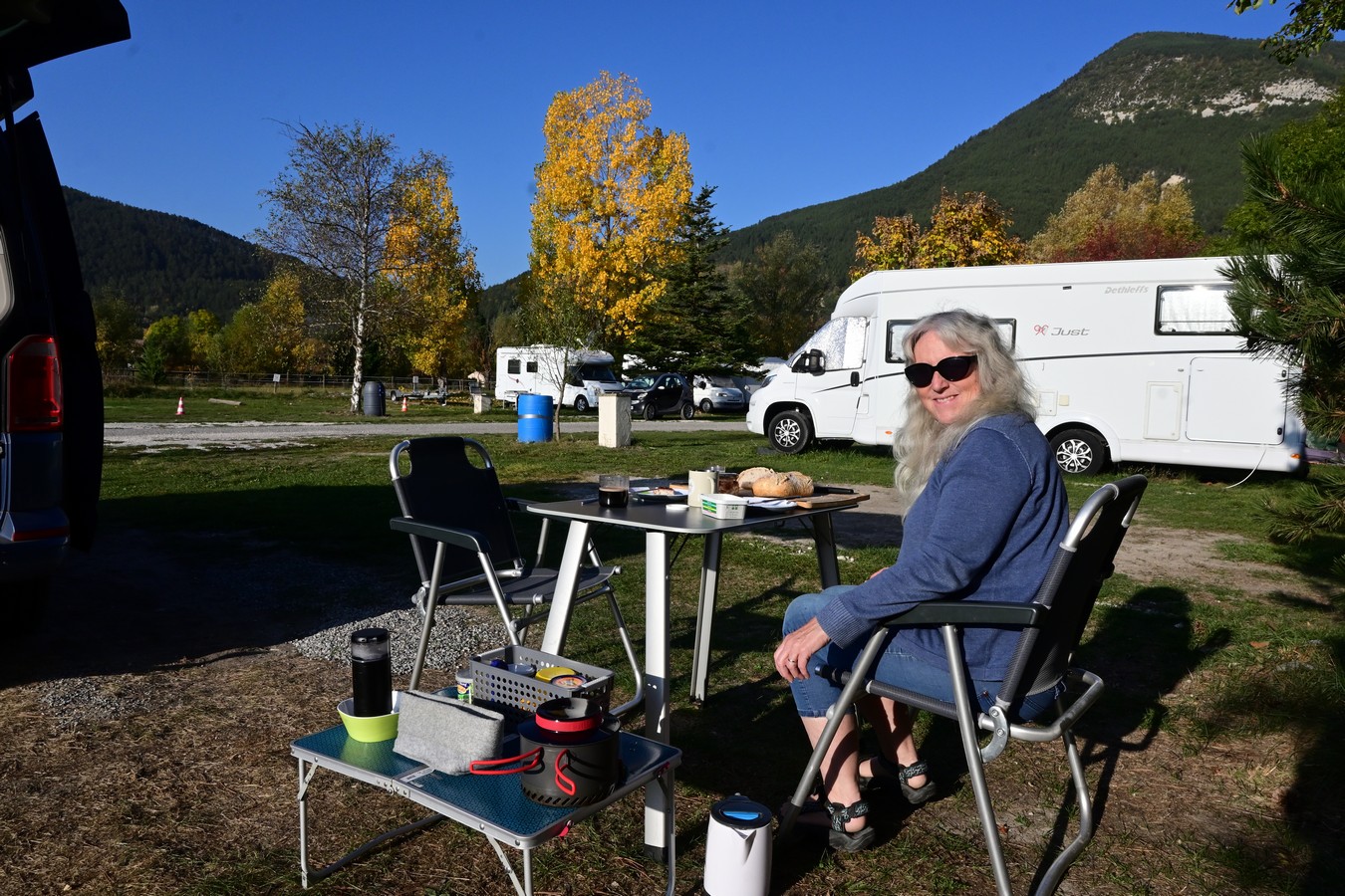 Unsere Fahrt geht weiter südwärts. In einem Café an der Route Napoleon geniessen wir einen Kaffee und eine heisse Schokolade. Die im Sonnenlicht leuchtenden Farben der Blätter der Bäume begleiten uns. Der Herbst ist auch eine ganz besondere Jahreszeit! Nun haben wir auch ein Ziel, nämlich Entrevaux und die zwei sehenswerten Schluchten in der Nähe. Leider ist eine wichtige Verbindungsstrasse wegen Bauarbeiten gesperrt. Man kann am Morgen in der Früh, über Mittag und am Abend ab 17h durchfahren. So bleiben wir auf einem sehr schönen privaten Stellplatz in Saint-André-les-Alpes-de-Haute-Provence. Und das Ganze für lediglich 5 Euro! Wie schön wäre es, wenn es auch in der Schweiz solche Möglichkeiten gäbe!
