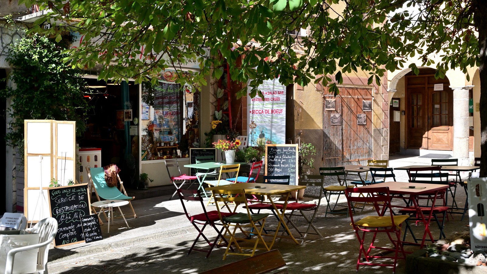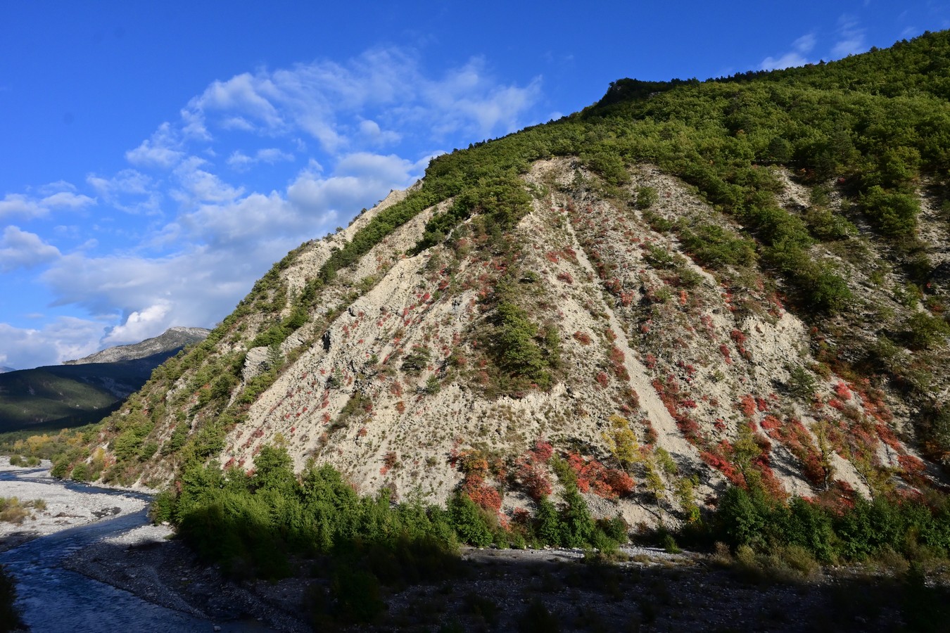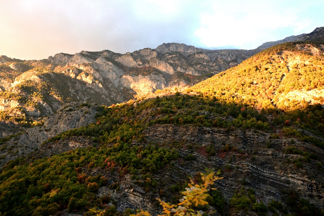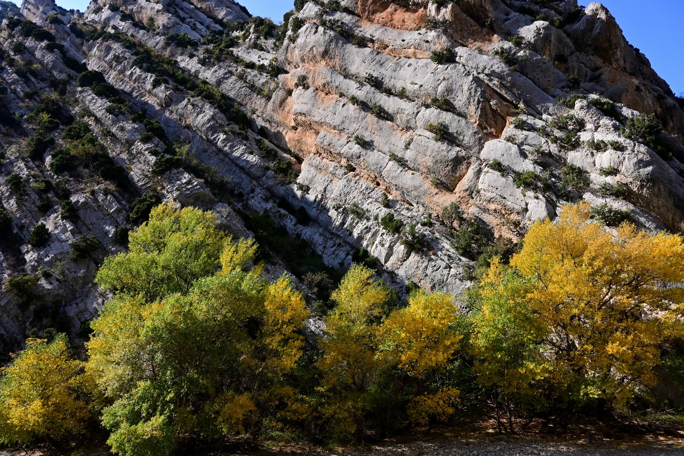 Unsere Fahrt geht weiter südwärts. In einem Café an der Route Napoleon geniessen wir einen Kaffee und eine heisse Schokolade. Die im Sonnenlicht leuchtenden Farben der Blätter der Bäume begleiten uns. Der Herbst ist auch eine ganz besondere Jahreszeit! Nun haben wir auch ein Ziel, nämlich Entrevaux und die zwei sehenswerten Schluchten in der Nähe. Leider ist eine wichtige Verbindungsstrasse wegen Bauarbeiten gesperrt. Man kann am Morgen in der Früh, über Mittag und am Abend ab 17h durchfahren. So bleiben wir auf einem sehr schönen privaten Stellplatz in Saint-André-les-Alpes-de-Haute-Provence. Und das Ganze für lediglich 5 Euro! Wie schön wäre es, wenn es auch in der Schweiz solche Möglichkeiten gäbe!