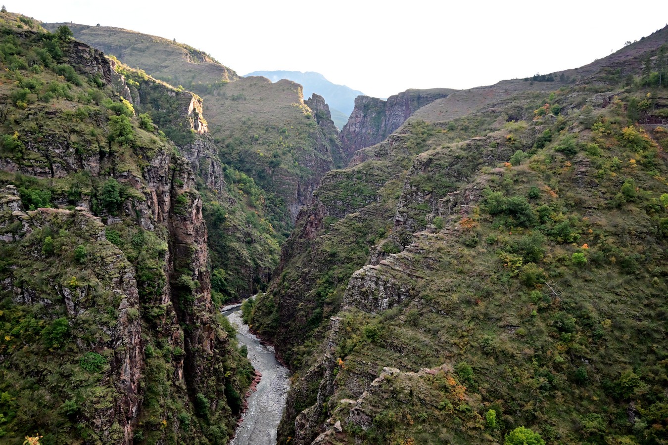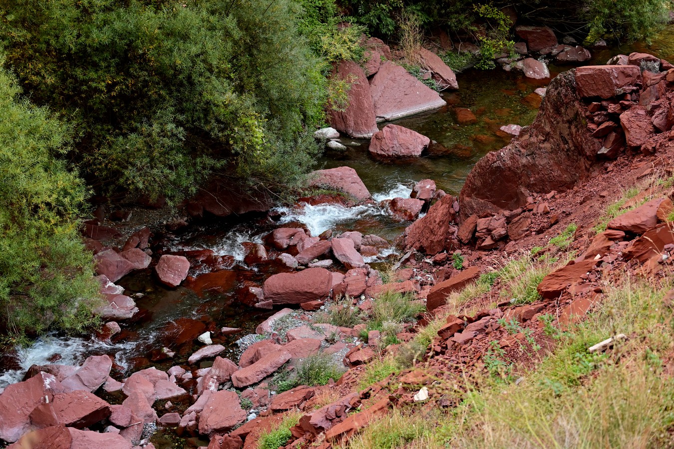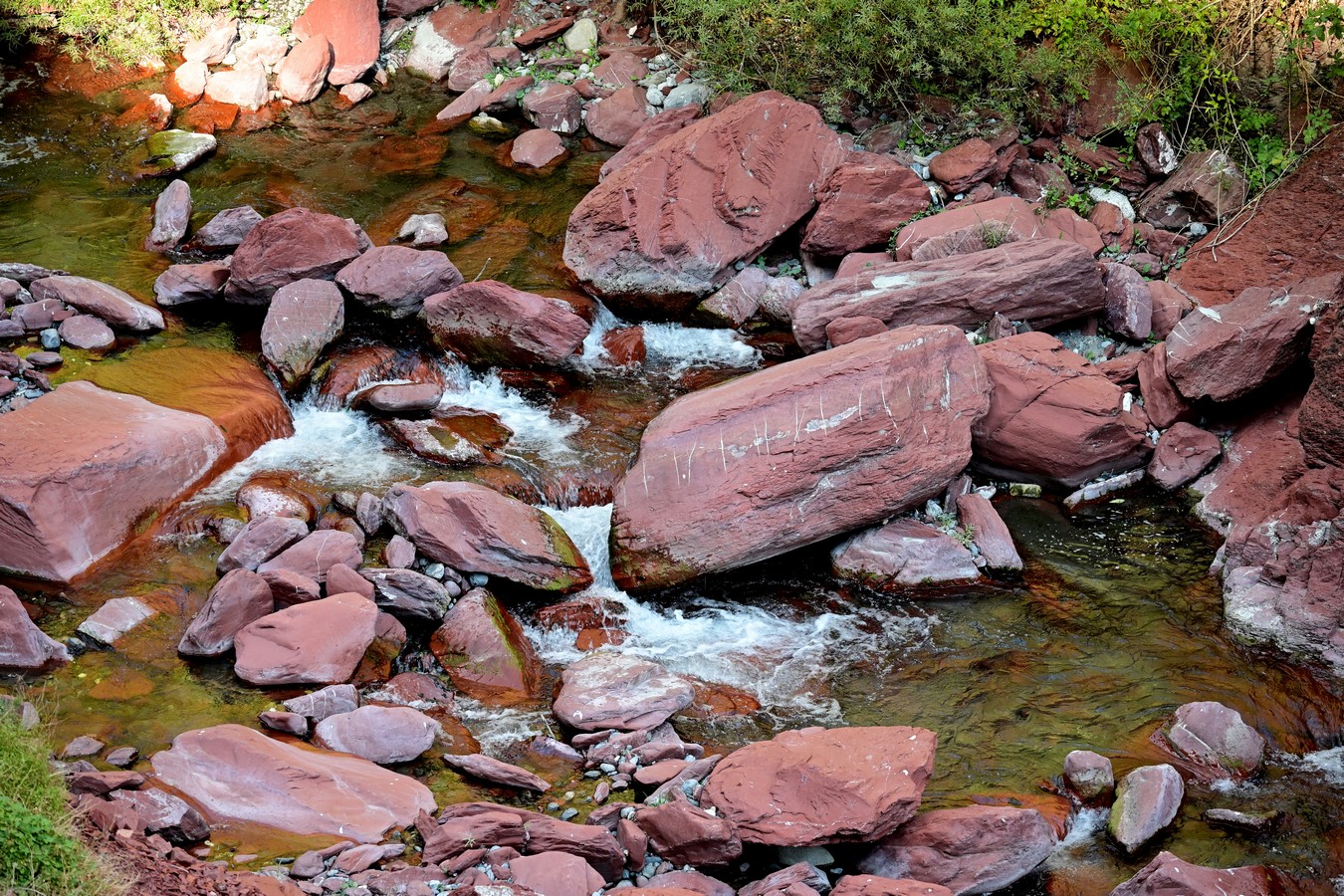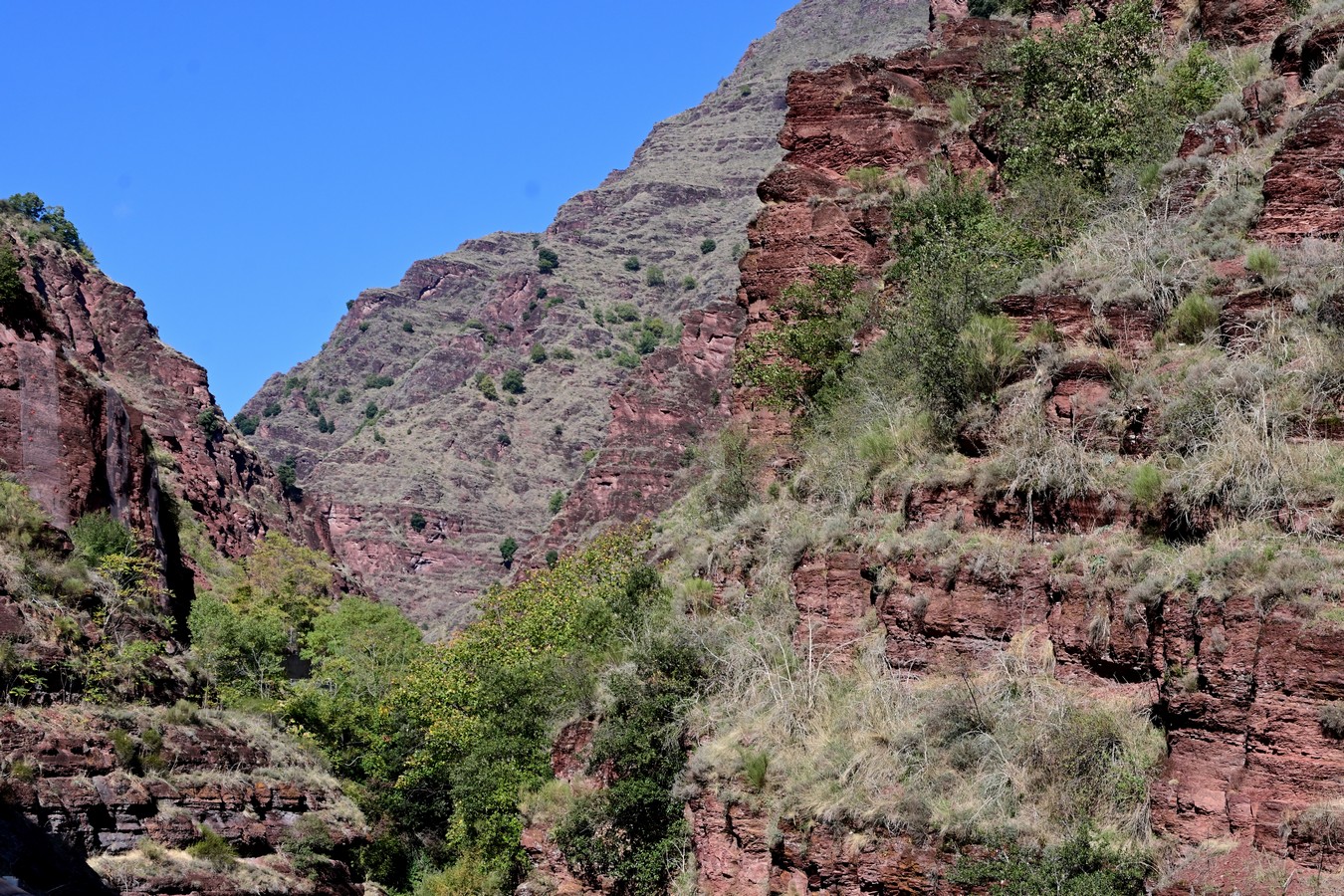 Die Landschaft der Schlucht «Gorges du Cians» fasziniert uns. Auch hier fahren wir durch rotes Gebirge, welches im Sonnenlicht und mit blauem Himmel sehr schön wirkt. Wir machen etliche Fotostopps und von einem kleinen Parkplatz aus kann man einige Meter auf der alten Strasse, abseits der heutigen Strasse der Schlucht entlang spazieren. In dieser Schlucht ist man nahe beim Fluss, welcher durch die Schlucht fliesst, im Gegensatz zu der «Gorges de Daluis», durch die die Strasse weit oben entlang verläuft. Am Ende wenden wir und fahren den gleichen Weg durch die Schlucht zurück. Diese imposante Gegend werden wir sicher wieder einmal besuchen.