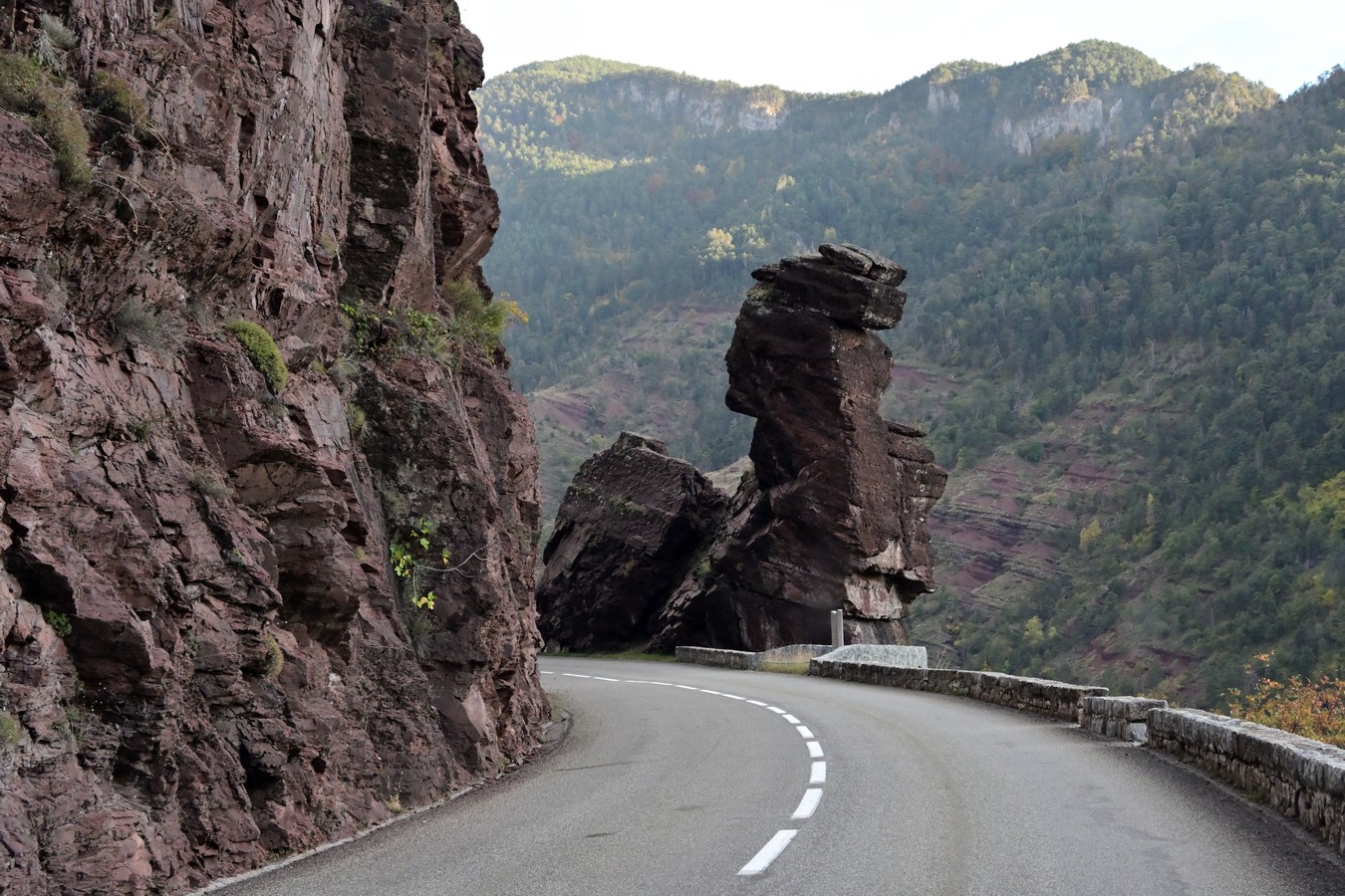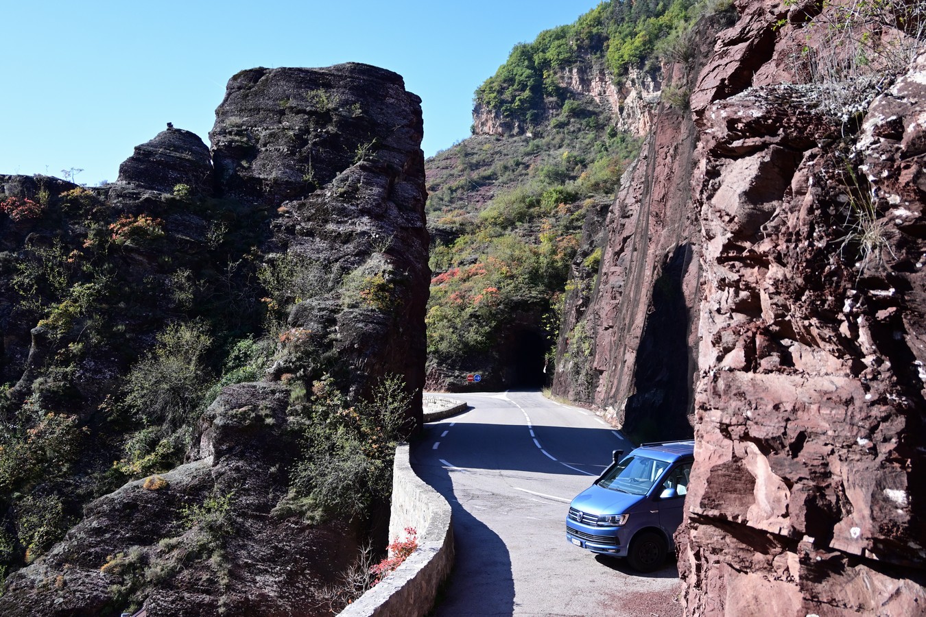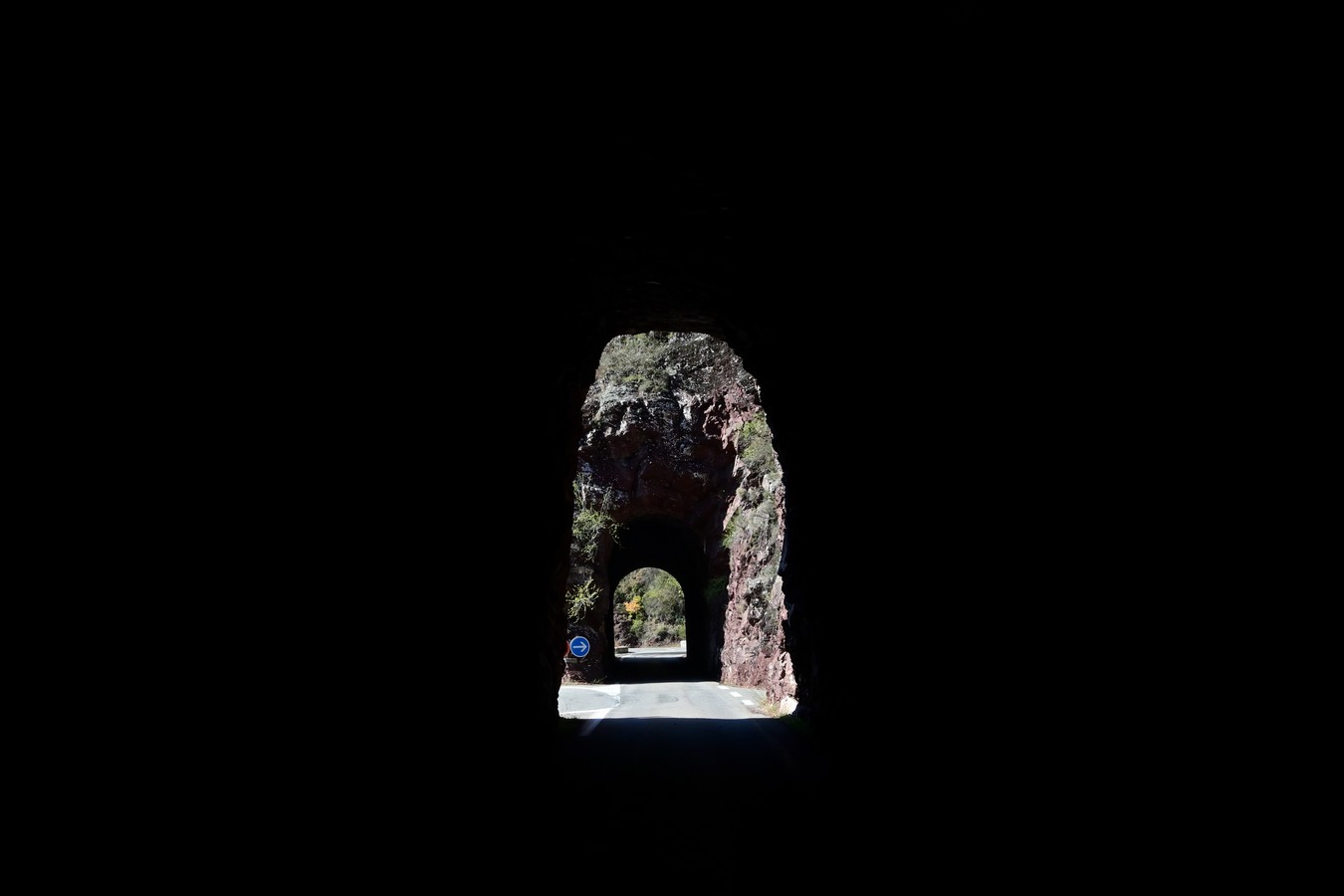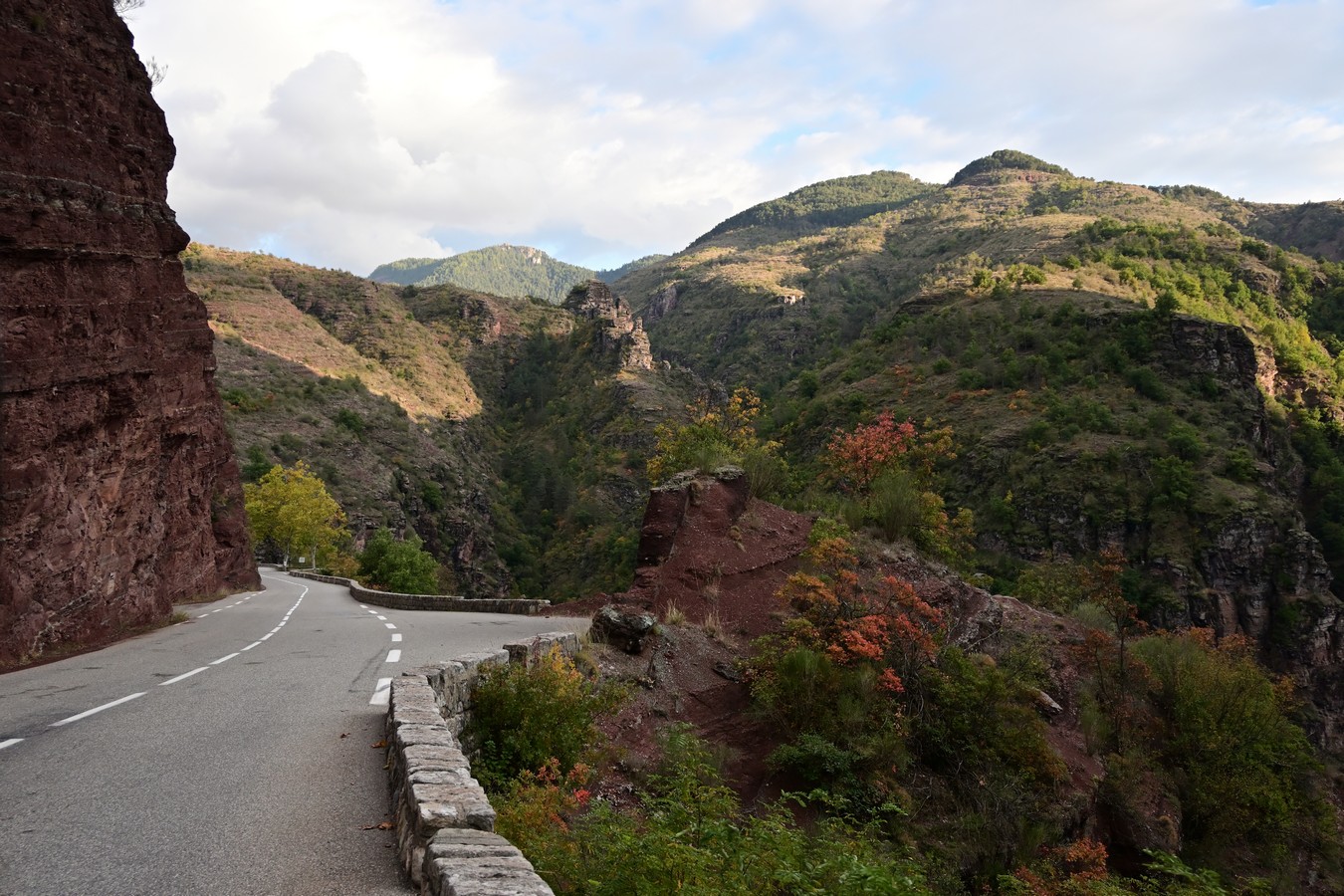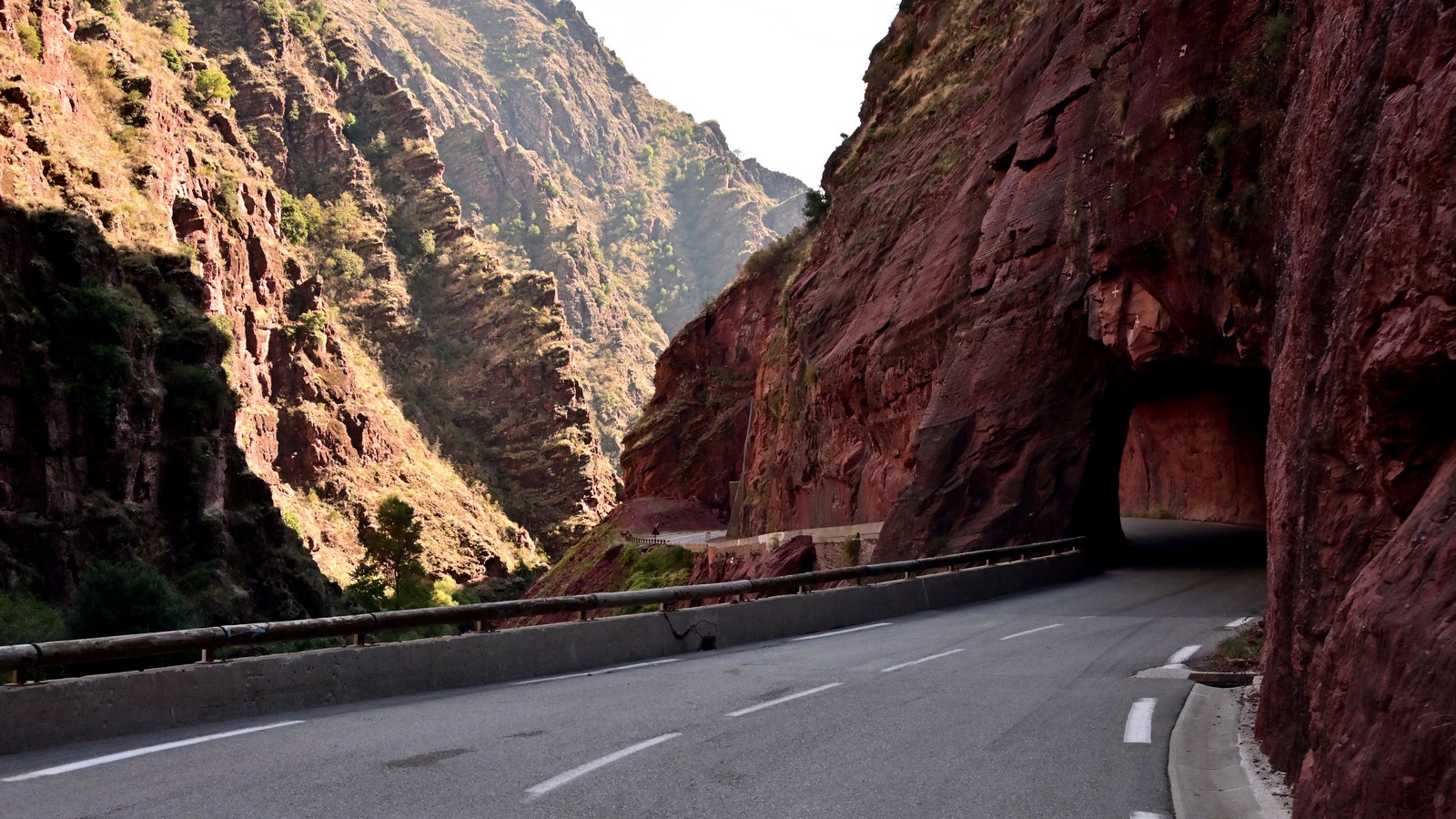 In Anbetracht der fortgeschrittenen Zeit, durchfahren wir ohne die Besichtigung von Entrevaux von Süd nach Nord die «Gorges de Daluis». Rote bizarre Felsen durch die sich die Straße mit einigen Tunnels durchschlängelt. Wenn man von Süd nach Nord fährt, führt die Spur rund um die Tunnels herum und man kommt der Ausblicke in die Schlucht näher. Von Nord nach Süd gehts durch 77 Tunnels. Leider ist die Sonne wegen der hohen Berge schon weg, aber die roten Felsen sehen dennoch imposant aus. Es gibt ein paar kleine Parkmöglichkeiten und diese nutzen wir natürlich.