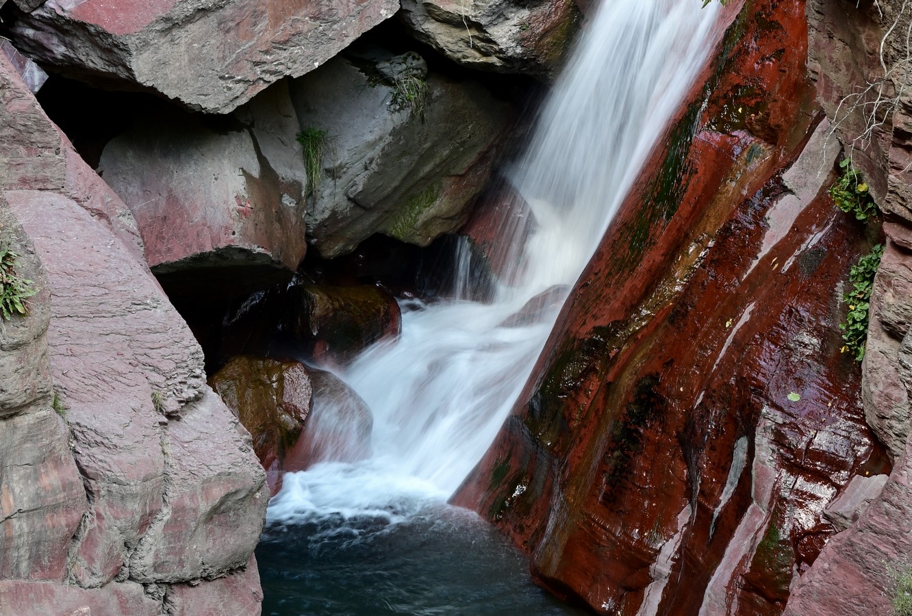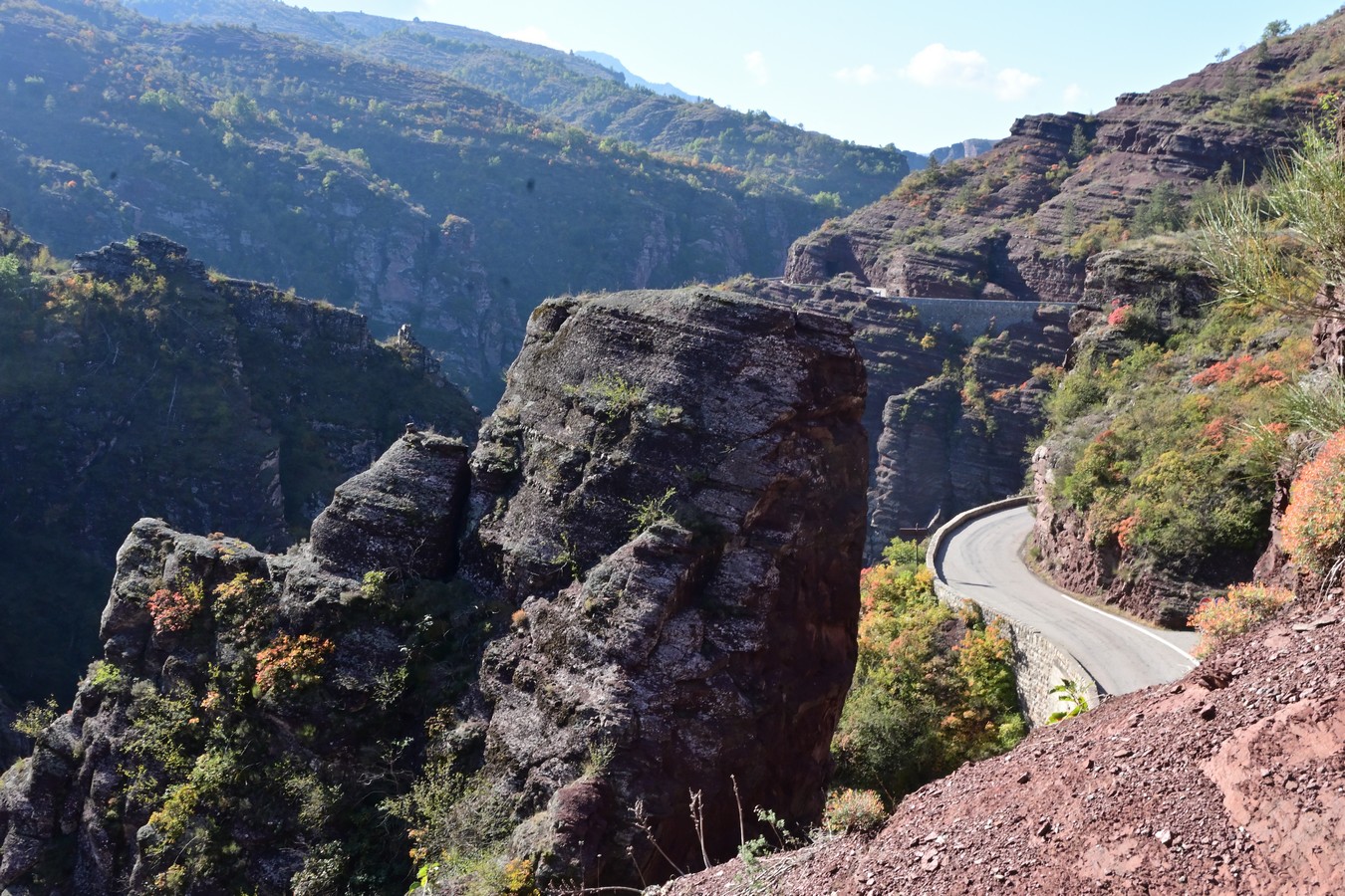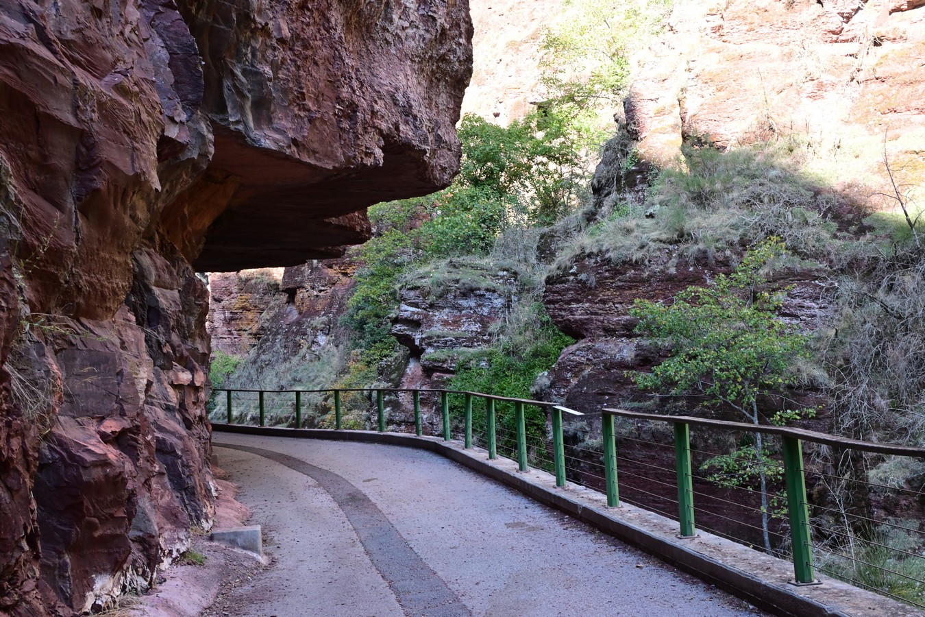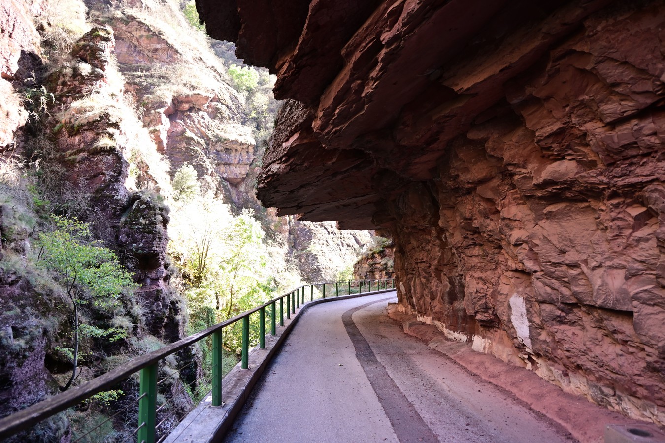 In Anbetracht der fortgeschrittenen Zeit, durchfahren wir ohne die Besichtigung von Entrevaux von Süd nach Nord die «Gorges de Daluis». Rote bizarre Felsen durch die sich die Straße mit einigen Tunnels durchschlängelt. Wenn man von Süd nach Nord fährt, führt die Spur rund um die Tunnels herum und man kommt der Ausblicke in die Schlucht näher. Von Nord nach Süd gehts durch 77 Tunnels. Leider ist die Sonne wegen der hohen Berge schon weg, aber die roten Felsen sehen dennoch imposant aus. Es gibt ein paar kleine Parkmöglichkeiten und diese nutzen wir natürlich.