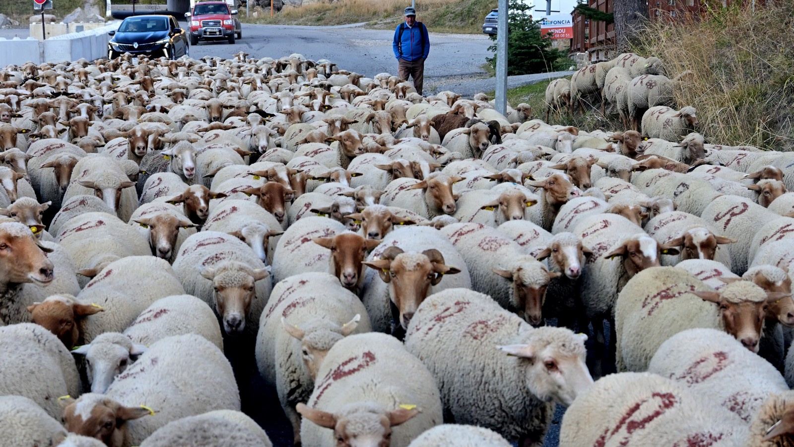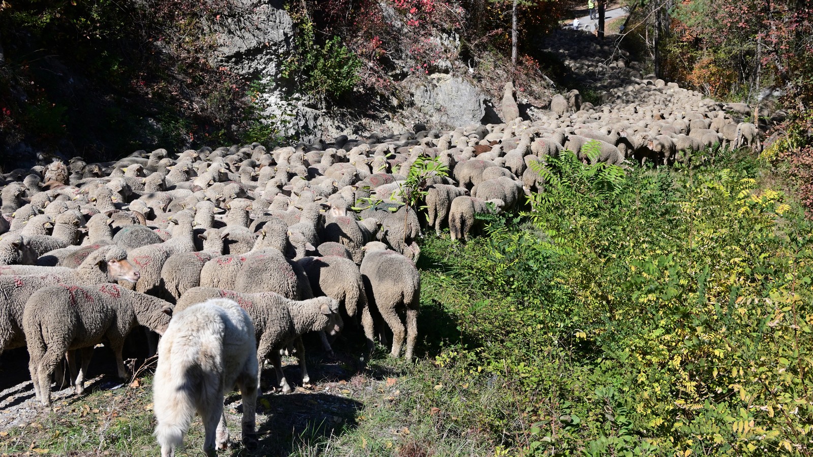 Trotz des Rauschen des Baches nebenan haben wir gut geschlafen. Nach 8h kaufe ich in der nahen Boulangerie ein feines Brot und Croissant. An der Sonne freuen wir uns am «zmörgele», bevor wir uns wieder zurück durch die Schlucht nach Entrevaux machen. Man erlebt die Schlucht wieder anders und zügig gehts durch die 77 Tunnels, bis wir ausgebremst werden durch eine Herde Schafe. Diese wird von einigen Männern und einem Hund auf der Strasse hinab getrieben. Die Schafe sind dichtgedrängt und ein solches Bild haben wir noch nie gesehen. Ca. 10 Minuten folgen wir im Schritttempo den Schafen und haben Freude an diesem besonderen Erlebnis. Die Fahrzeuge, welche uns entgegenkommen verschwinden im Schafmeer und bleiben stehen, bis die Schafe vorbei sind. Irgendwann biegt die Herde in eine Abzweigung ein und verlassen die Strasse.