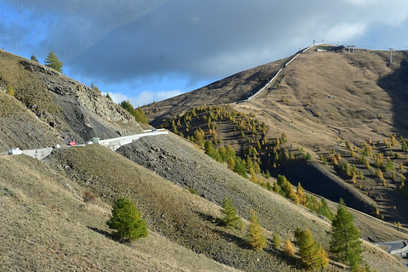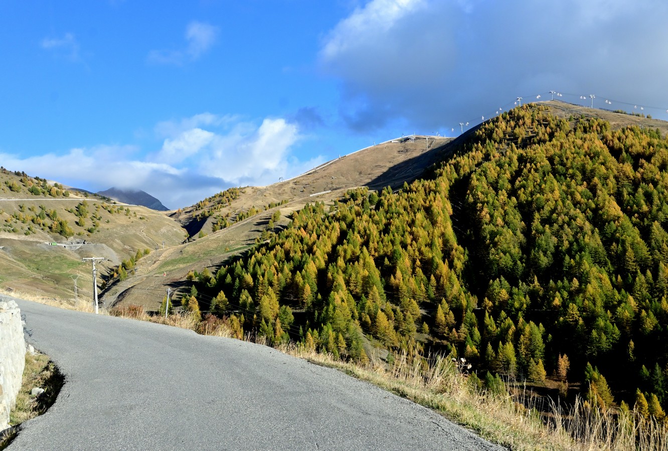 Da die Strasse auch heute Samstag gesperrt ist, bleibt uns nur die Umfahrung über die Berge übrig. Kurzentschlossen entscheiden wir uns dem Navi zu folgen und über den 2240 m hohen «Col d’Allons» zu fahren. Diese Fahrt in der Abendsonne ist herrlich und wunderschön. Die Passstrasse ist schmal und nur für 3,5 Tonnen Fahrzeuge zugelassen. Die Südseite des Passes zeigt sich als riesiges Skigebiet. Auf der Nordseite begleitet uns lange ein herrliches Bergpanorama! Wir sind begeistert und dankbar uns für diesen Weg entschieden zu haben.