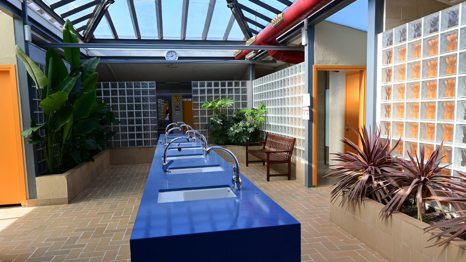 Jetzt heisst es Abwaschen und dies tun wir im Abwaschraum vom Campingplatz. Kaum zu glauben wo der blaue Himmel geblieben ist… wir haben wieder eine graue Wolkendecke. Wir sind hart gesottene Camper und setzten uns dennoch nach draussen. Nun bekommen wir neue Nachbarn aus Deutschland. Wir kommen miteinander ins Gespräch und erfahren von einem sehenswerten Ort nicht weit weg von hier. Wir sind immer froh um solche Tipps. Heute machen wir uns am späten Nachmittag auf zum kleinen Hallenbad. Die neu gekauften Badekappen nehmen wir natürlich mit. So sind wir ganz konform gekleidet. Es ist cool, dass wir alleine sind! Wir schwimmen einige Male hin und her. Es sind nur ca. 10 m, aber es ist dennoch schön und tut gut. Um 18h30 verlassen wir das Hallenbad und lassen uns ein Abendessen im Campingrestaurant schmecken.